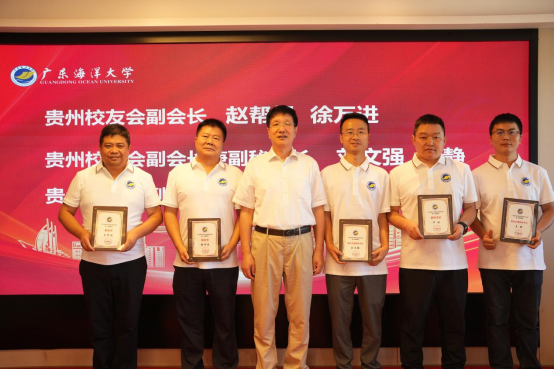 杨洲介绍了学校的发展历程以及在学科建设、队伍建设、人才培养、科技创新和社会服务等方面取得的成绩。杨洲指出,贵州是中国西部陆海新通道的重要节点,近年来,在大数据、生态经济、绿色农业等领域的特色发展之路,与我校在水产养殖、智慧渔业、食品绿色加工等领域的优秀高度契合。当前,国家正以新发展理念为引领,全力推进高质量发展,构建新发展格局,推进中国式现代化,学校作为一所具有鲜明特色的高校,迎来了前所未有的发展机遇和挑战。他期望与更多的校友一同为学校建设和地方经济社会发展“挑大梁”“担大责”。并提出了四点期望:一是要让校友会成为“情感共同体”用温度凝聚力量;二是要让校友会成为“发展连接器”,用优势赋能校地;三是要让校友会成为“精神传声筒”,用行动擦亮底色;四是要让校友会成为“责任践行者”,用担当回馈社会。杨洲向校友们诚挚发出邀请,相约今年11月22 日,相聚海大,共同见证母校90周年华诞,共享母校的喜悦和荣光。最后,还与在黔校友分享了母校获赠天安门国旗的喜悦。