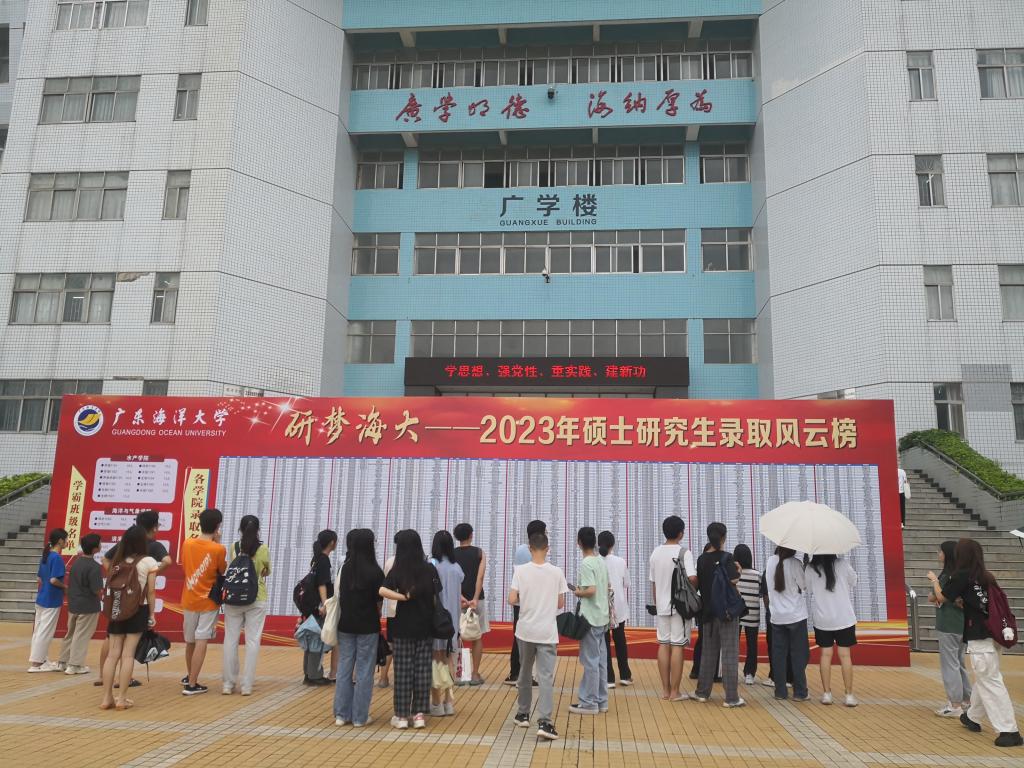 近年来,我校考研氛围逐渐浓厚,考研报考率、录取率、录取院校层次节节攀升,今年考研结果呈现如下亮点:一是考研录取质量创历史新高。414名学生被浙江大学、中国科学技术大学、中山大学、天津大学、西北工业大学、厦门大学等双一流高校录取,比2022年增加129人,增幅达45.3%。二是考取本校硕士研究生数量创历史新高。我校硕士研究生培养质量受到本科学生进一步肯定,共182人选择考取本校硕士研究生,增幅达68.5%。三是学科人才培养优势明显。水产学院、海洋与气象学院、滨海农业学院、化学与环境学院等四个学院的报考录取率超过40%,其中水产学院报考录取率达60.5%,综合录取率达41.4%。四是学霸班级数量增多。全校被录取10人以上的学霸班级24个(同比增加14个),其中水产学院11个,滨海农业学院5个,海洋与气象学院4个,食品科技学院和化学与环境学院各2个。