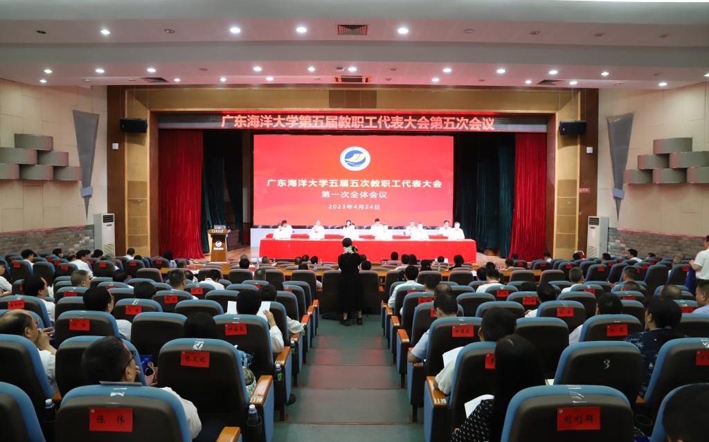 击鼓催征,奋楫扬帆。4月24日上午,学校第五届教职工代表大会第五次会议在湖光校区多功能厅召开。五届五次教代会正式代表、列席代表、特邀出席人员共218人肩负重托,凝心聚力,为学校加快高质量发展共商大计。大会主席团执行主席、学校领导杨洲、彭权群、林晓敏、刘东超、高秀梅、谭北平、邓逢光,大会主席团秘书长林宇,特邀出席人员胡日章、容景春、陈泽球等在主席台就坐。学校党委副书记、纪委书记彭权群主持预备会议。学校党委副书记林晓敏主持全体代表第一次会议。